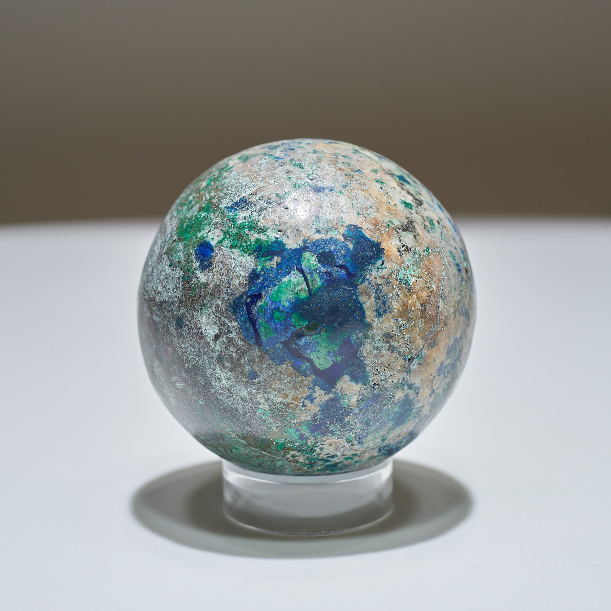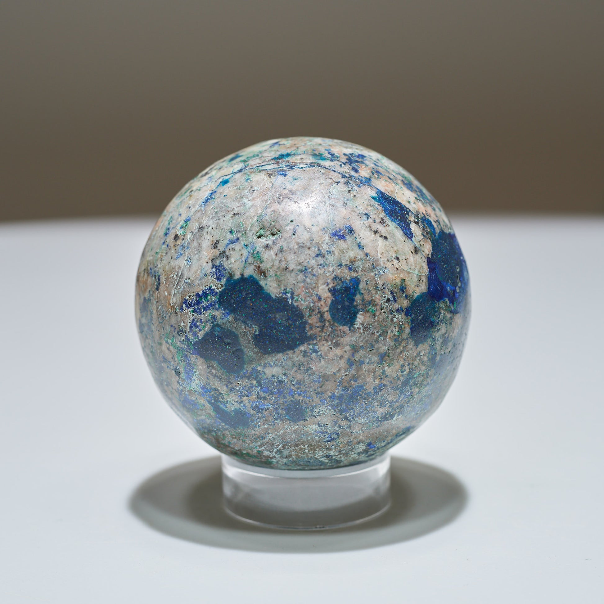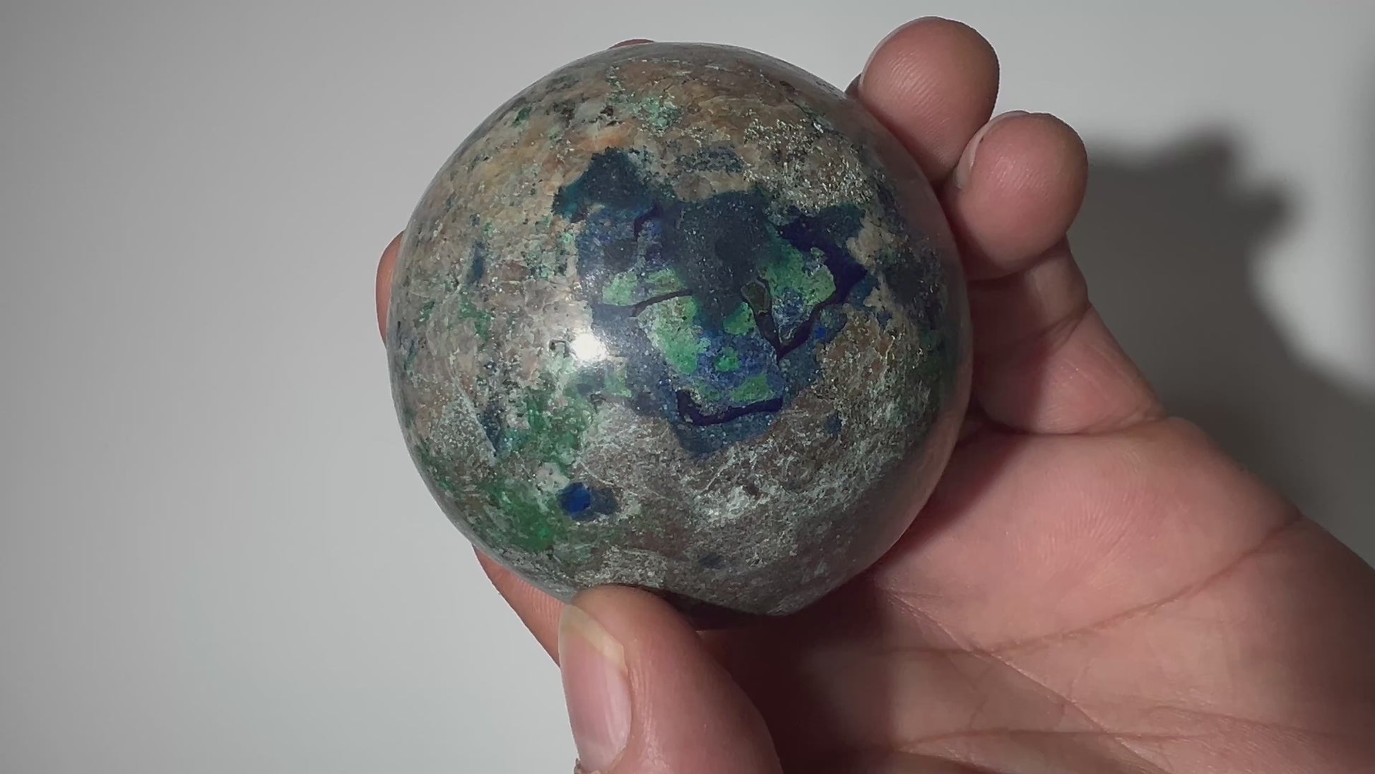 Azurite Sphere from The Democratic Republic of Congo, Haut-Katanga Province, Kolowezi District. Ethically mined by locals fair trade and polished by local Artisans in the city of Lubumbashi.